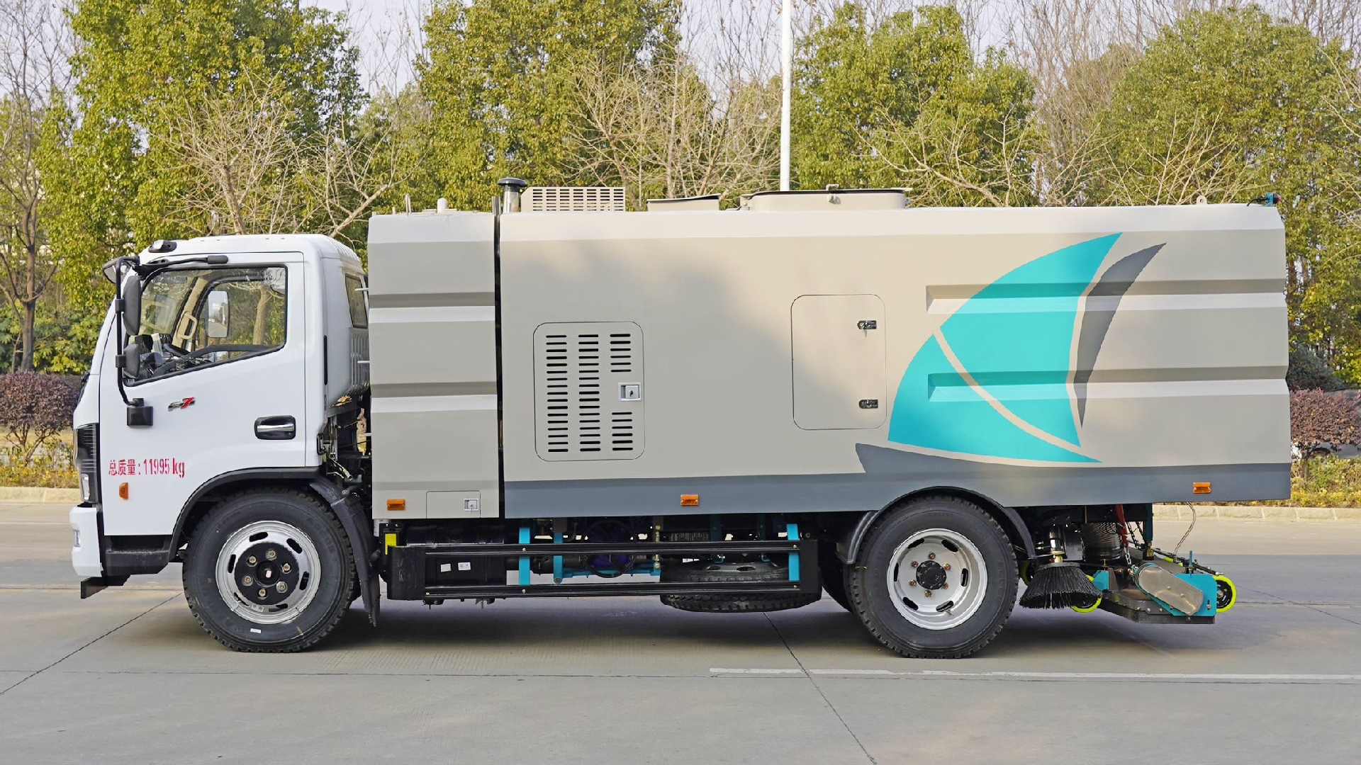 上装配置:水箱2立方,垃圾箱容积5立方,江铃64KW副发动机/康明斯140马力副机(可选),免维护风机,电子水泵,液压油管,液压缸(海普瑞斯)控制开关(施耐德),免维护离合器,液压油管,液压元件采用驾驶室手动集中控制,操作方便。吸嘴为后置浮动式,带滚扫,带侧边刷,吸盘可自动调节适应地面凹凸不平的状况。单独打气泵和单独液压油散热器,最大清扫宽度2.8M;手动泵应急系统。