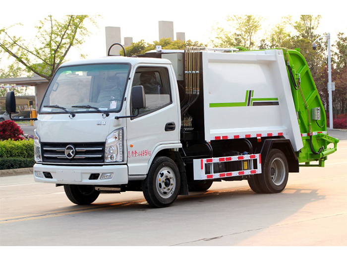 采用Q345高强度锰钢板制作,厢体容积:4立方米,可装10立方散装垃圾,压缩倍率2.5-3倍,压缩后生活垃圾密度从0.36变为0.95以上,合肥长源快速液压泵,大流量快速手自一体多路换向阀,西门子PLC电控系统,卸料时带一键循环系统,司机不下车可完成卸料工作,尾部 带密封橡胶垫,可防污水滴漏二次污染。尾部选装翻转大落地斗装置,选装遥控器操作,让你远离灰尘,干干净净工作。 国六蓝牌凯马4方压缩垃圾车可选配后挂桶翻转机构,三角斗,全密封斗,可挂国标240升垃圾桶或660升垃圾桶。